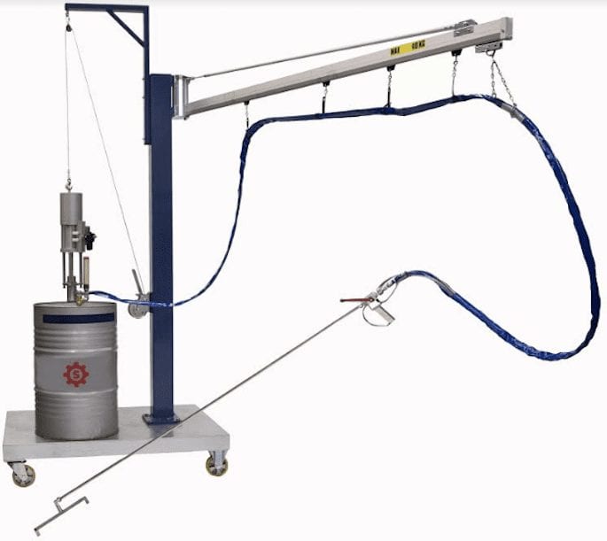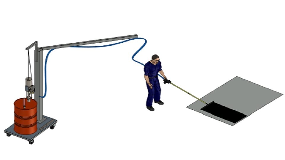 The equipment can be supplemented with a trolley with a jib crane to assist in the handling of the hose and in changing the adhesive drum.