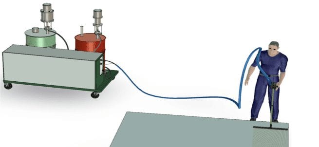 M210 is a manual machine system for pumping, mixing and spreading of two component adhesives customized for production and manufacturing of sandwich panels. The system serves to provide efficiency in a low quantity production of sandwich panels and can handle panels of any size.
